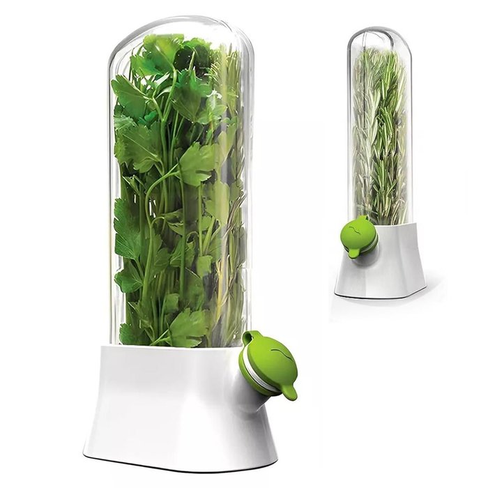 Produzido em ABS, livre de BPA é seguro de usar. Ideal para a sua cozinha prolongar a frescura das ervas.