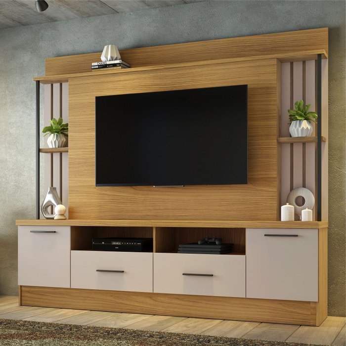 Beleza, robustez e sofisticação definem o Home Afeto. Produzido em MDP 15mm, Tampo 40mm, Gavetas com corrediça telescópica, Portas com dobradiça de pressão, Detalhe ripado, Prateleiras 25mm, Espaço para TV: 1450mm x 1060mm (LxA), Recomenda-se TV de até 65"