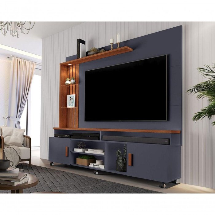 Além disso por ser um home com painel não é necessário a perfuração da parede para a instalação, e possui rodízios que facilitam a movimentação do móvel no dia a dia.