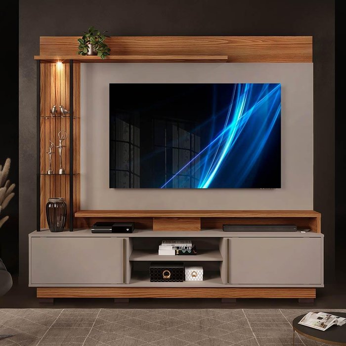 Home Para TV Até 70 Polegadas Com LED Carvalho Nobre Griz Martino DJ Móveis