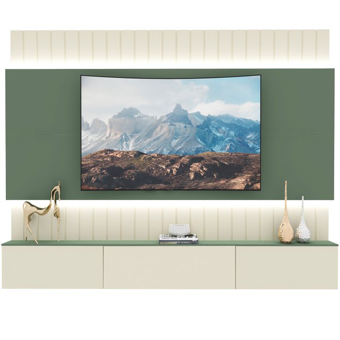 Home para Tv com Led Soberano 2.6 Off White com Verde Floresta - Gelius Móveis