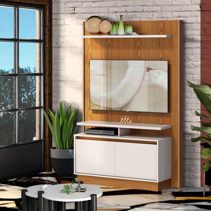 A estrutura em MDP deste suporte é robusta e durável, proporcionando estabilidade e segurança para televisões de até 50 polegadas.- Estrutura em MDP- Suporta televisão de até 50 Polegadas- Prateleiras e tampo em MDP- 2 Portas com dobradiças metálicas- Base com sapatas plásticas- ótimo para ambientes pequenosDimensões do Home: Largura 122 cm; Profundidade 43 cm; Altura 180 cm.Itens Inclusos: 1 EstanteComplexidade da montagem: Média, pode ser montado por apenas uma pessoa e/ou necessite de maior conhecimento para montagem.Recomendações de uso, manutenção e limpeza: Limpar com flanela ou pano macio seco, não utilizar produtos abrasivos, desengordurantes, álcool ou solvente. Não expor o produto diretamente a luz solar e à umidadeGarantia: 3 mesesOBS: Foto meramente ilustrativa, objetos, utensílios e decoração não fazem parte do produto.