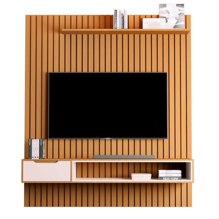 Esse Home Suspenso é perfeito pois possui detalhes ripados garantindo a elegância do seu ambiente. Comporta TVs de até 75 Polegadas. Feito em MDP 15mm, 1 prateleiras e 1 nicho para acomodar objetos decorativos e eletrônicos. Informações do Home: Altura: 220 cm Largura: 185 cm Comprimento: 34,5 cm Informações do Home: Cor: Nature/Perola Prateleira: Sim (1) Gavetas: Sim (1) corrediça telescópicas. Nichos: Sim (1) Puxadores: Sim (1) Usinado 2 Passa Fio Material: MDP 15mm Itens Inclusos: 1 Home Manual de Montagem Kit completo para montagem e manual de instruções Garantia: 3 meses contra defeito de fabricação Informações Adicionais: - Fotos meramente ilustrativas do produto no ambiente. - Os objetos que ambientam as fotos não acompanham o produto; - Verificar descrição e tamanho do produto antes da compra. - Avaliar a mercadoria no ato do recebimento e recuse em caso de divergência ou avarias. - Mantenha as informações de contato e endereço de entrega atualizados para entrarmos em contato caso necessário. - Limpar com flanela ou pano macio seco, não utilizar produtos abrasivos, desengordurantes, álcool ou solvente. Não expor o produto diretamente à luz solar e à umidade. * Sugerimos a contratação de um montador profissional para a montagem do produto. Não nos responsabilizamos por avarias causadas no ato da montagem. * Não nos responsabilizamos pela montagem e desmontagem do produto no ato da entrega e devolução, assim como os custos gerados nestas situações. * A transportadora entregará o produto no andar térreo do endereço de entrega. * Não nos responsabilizamos por subir escadas, corredores e elevadores ou transporte por guincho em apartamento