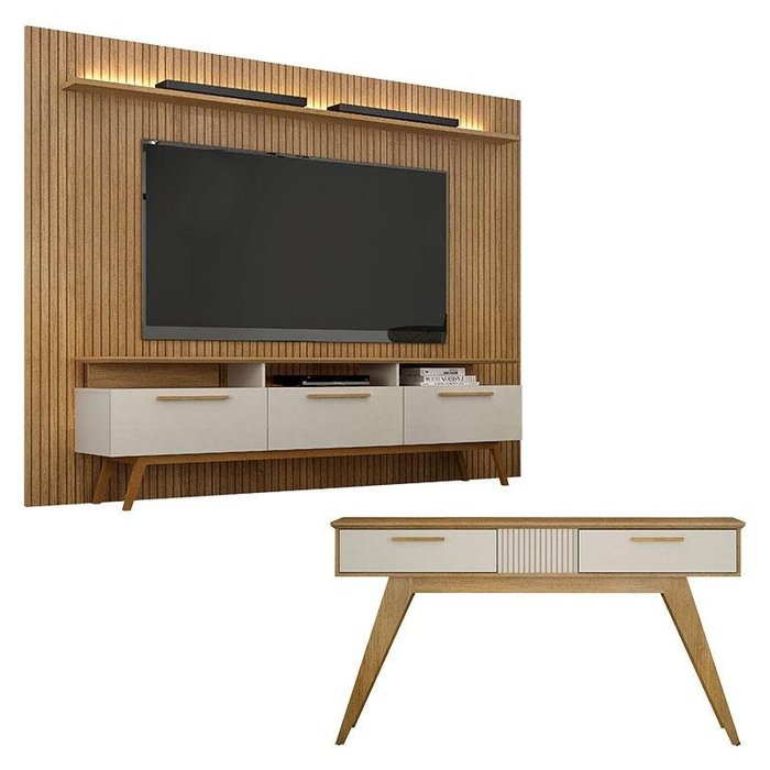 Home Suspenso Curitiba com Led Rack Bancada São Paulo e Aparador Lívia Cinamomo Off White - Valdemóv