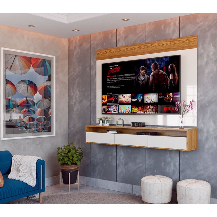 Home Suspenso Life 1.8 Off White com Freijó - MóveisAqui