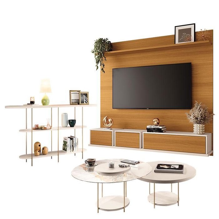 Home Suspenso Max Cinamomo Off White e Aparador Vivant e Kit Mesa de Centro Sky Off White- HB Móveis