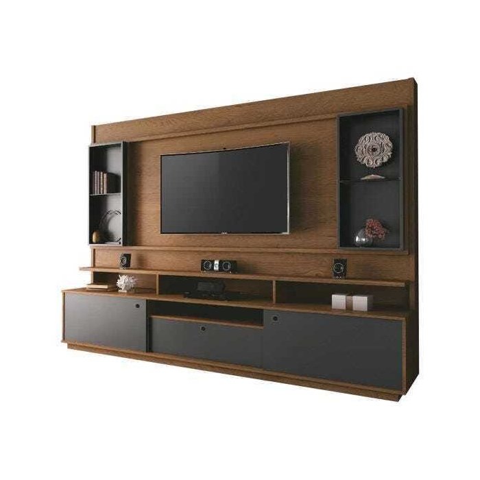 Home Theater Coliseu Naturale com Grafite - Edn Móveis