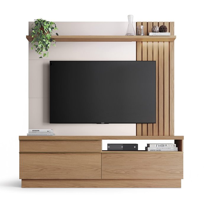 Home Theater Fox para TV até 70 Polegadas com LED e Gavetas Freijó/Off White