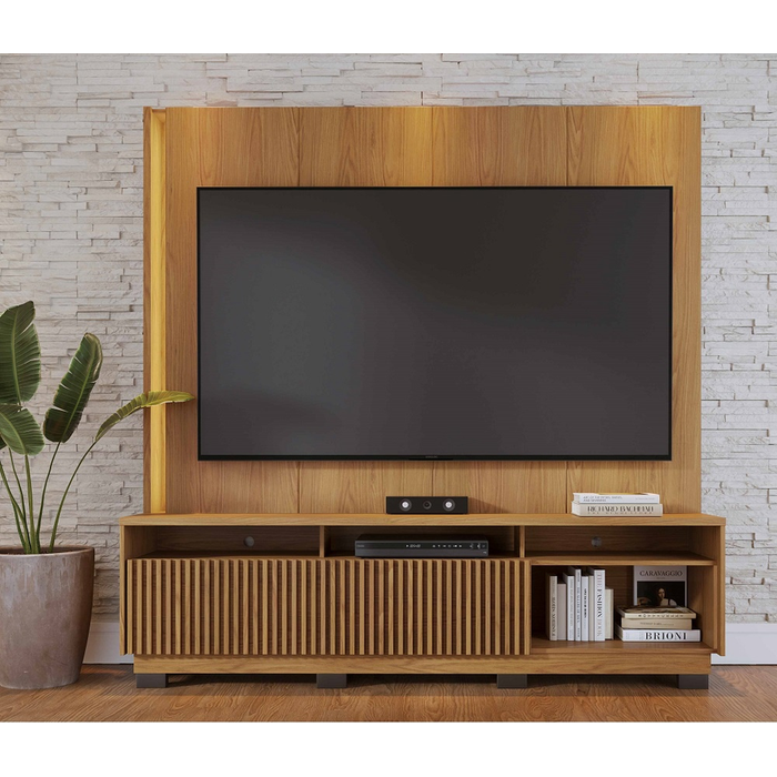 Home Theater Jordão com Painel Chanfrado C/ Led Nas Prateleiras com Pés - Freijó Colibri