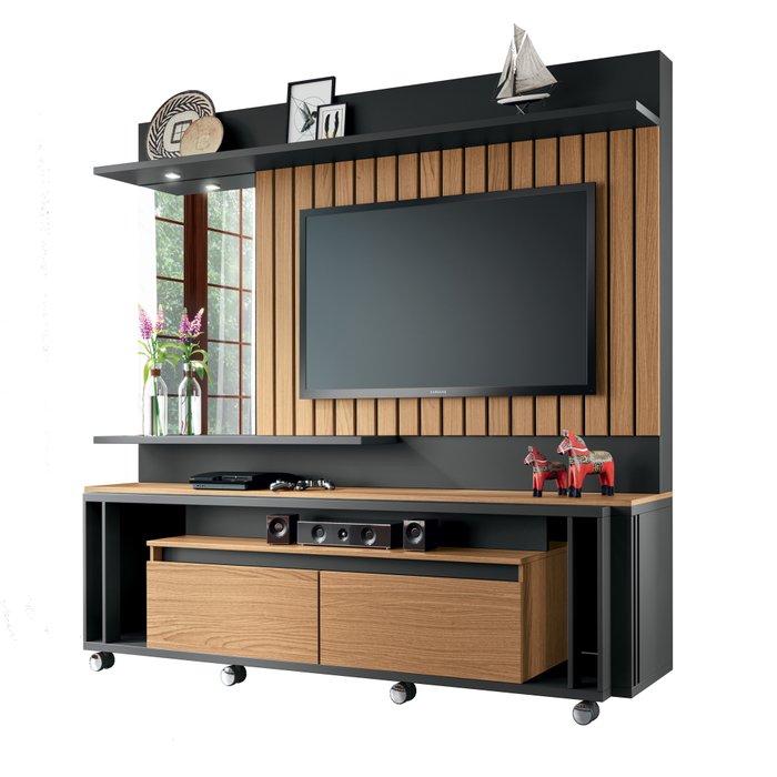 Home Theater Mariene para Sala de Estar/ Escritório Preto/ Freijó
