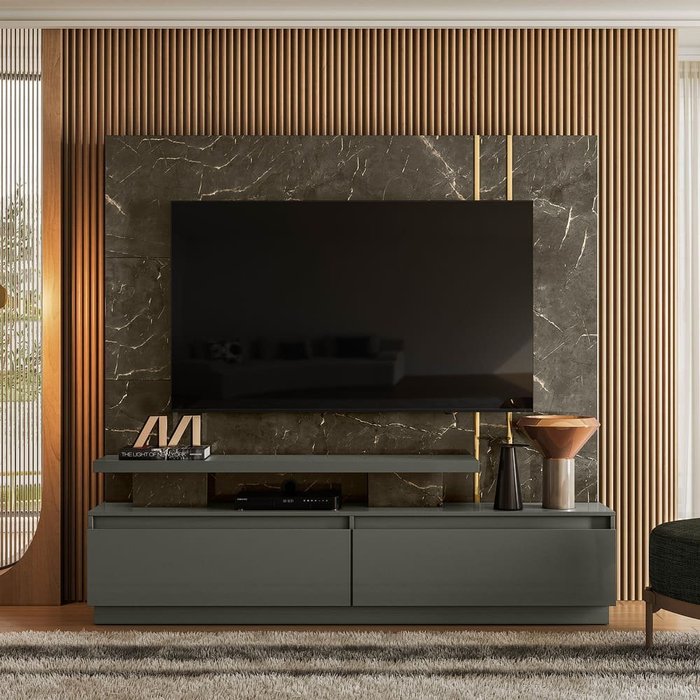 Home Theater Persa TV 75 2 Gavetas Jade Oliva Tana Decor