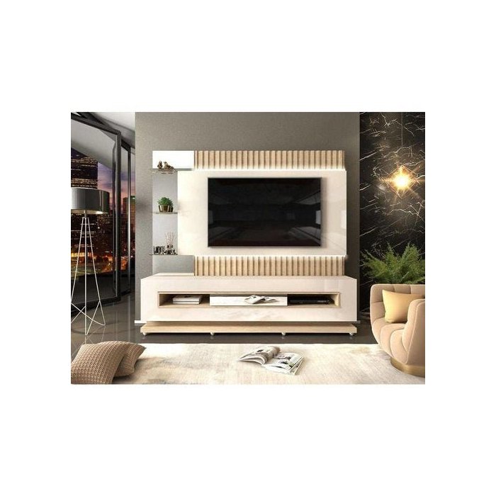 Home Theater Solare Para TV até 60 Polegadas Ripado Com LED DJ Móveis Off White Duna
