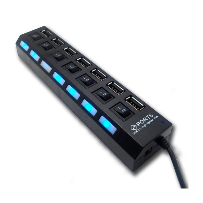 O Hub 7 portas USB 2.0 multiuso com botão liga/desliga e indicador de LED é o produto indicado para usuários que necessitam de muitos dispositivos conectados ao PC ou notebook. Como os computadores vendidos atualmente contam com um número limitado de portas USB, e cada vez mais temos dispositivos que se conectam aos computadores por entradas USB, é necessário ter em mãos um instrumento que facilite a conectividade de vários dispositivos em uma única porta USB 2.0.