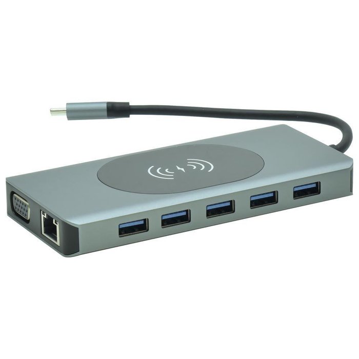 Hub Usb Type-c 3.1 14 Portas / 2 Hdmi / 5 Usb 3.0 / Type-c Fêmea / Glan / Vga / Sd / Tf / 3.5mm / Carregador Wireless 15