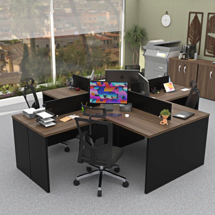 Invista no seu bem-estar e na sua equipe com a Ilha em L da Linha Office Netmobil!