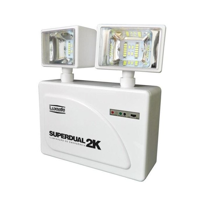 A luminária de emergência Led SUPER DUAL 2K LUXSAFE possui 2 potentes faróis direcionáveis, com leds SMD de alto brilho, que proporcionam 2000 lumens de fluxo luminoso. É utilizada em caso de falta de energia elétrica, permitindo que as pessoas possam se deslocar, continuar seu trabalho ou evacuar o ambiente com segurança em uma situação de emergência. Indicado para ambientes maiores, com pé direito alto ou amplos em extensão.