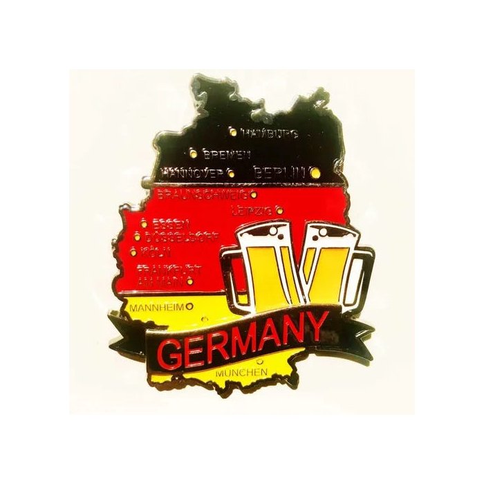 Imã Alemanha com Mapa, Bandeira, Cidades e Símbolos - Imã de Geladeira