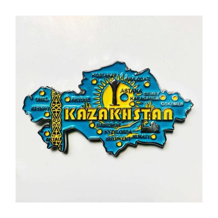 Imã Cazaquistão com Mapa, Bandeira, Cidades e Símbolos - Imã de Geladeira