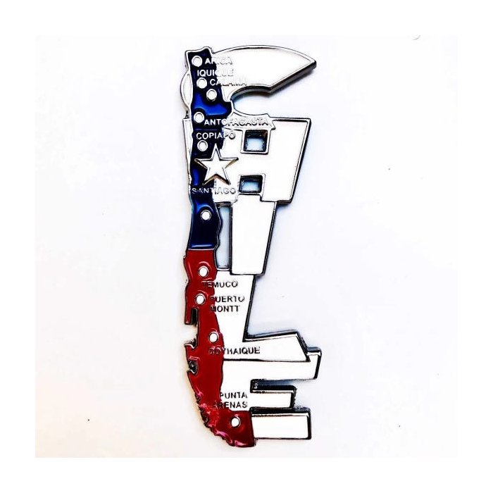 Imã Chile com Mapa, Bandeira, Cidades e Símbolos - Imã de Geladeira