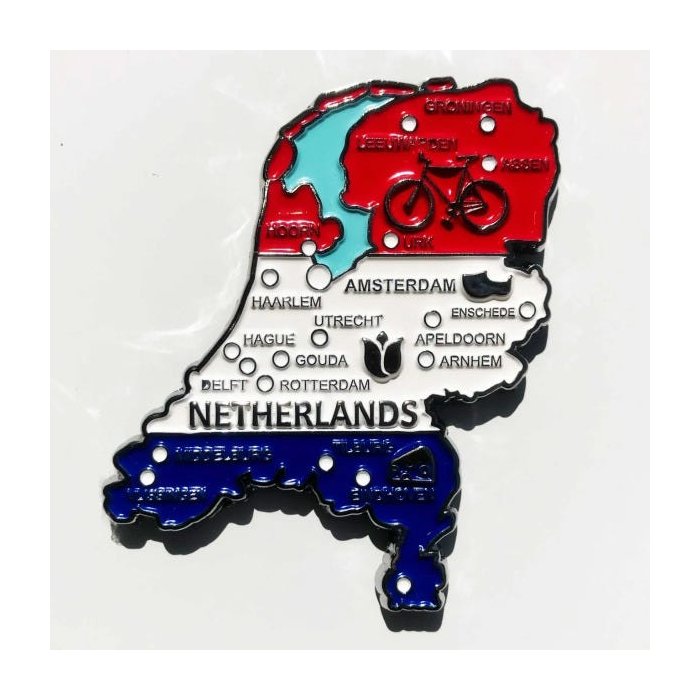 Imã Holanda com Mapa, Bandeira, Cidades e Símbolos - Imã de Geladeira