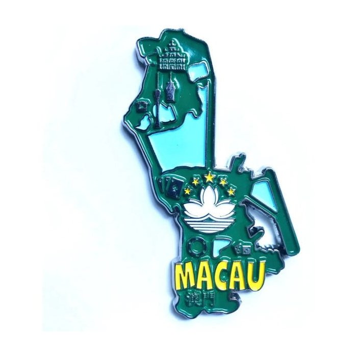 Imã Macau com Mapa, Bandeira, Cidades e Símbolos - Imã de Geladeira