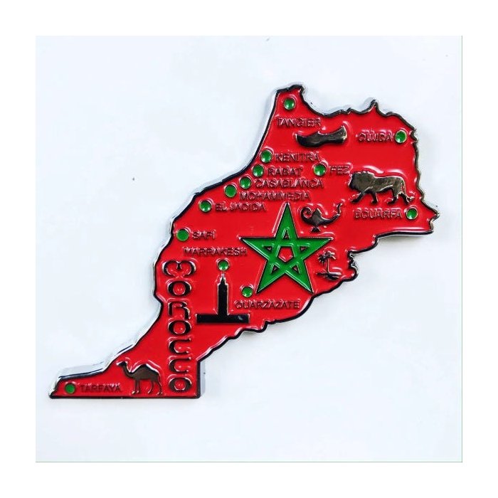 Imã Marrocos com Mapa, Bandeira, Cidades e Símbolos - Imã de Geladeira