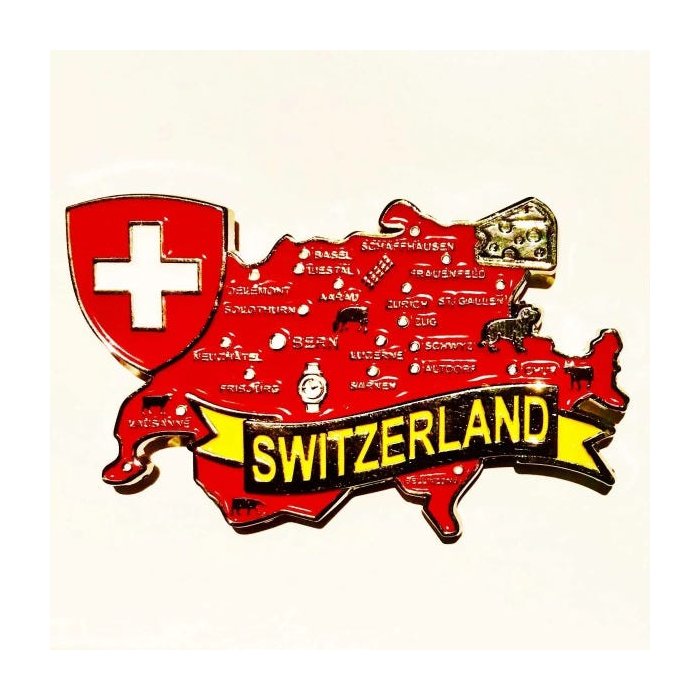 Imã Suiça com Mapa, Bandeira, Cidades e Símbolos - Imã de Geladeira