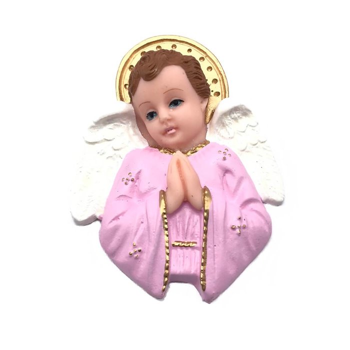 Imagem Anjinho Anjo da Guarda de Parede Rezando Rosa 13 cm