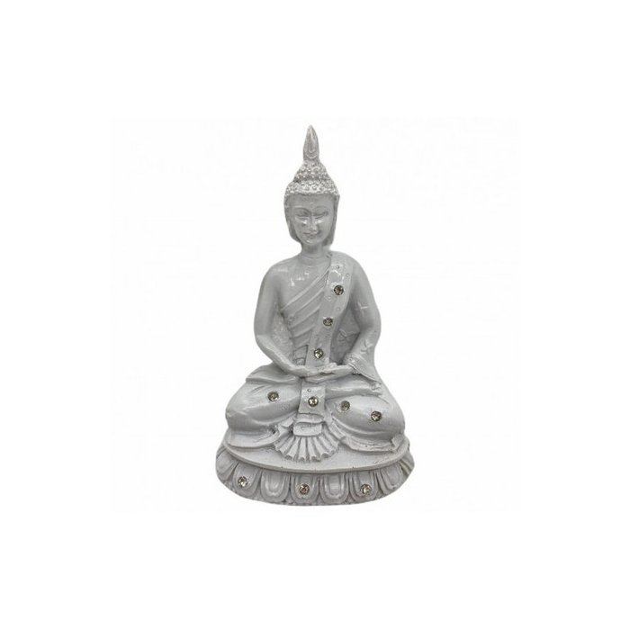 Imagem Buda Meditando Branco Escultura Resina Estatua 12 Cm Branco