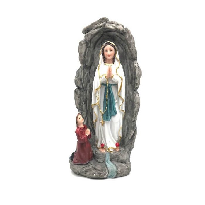 Imagem de Nossa Senhora de Lourdes com Santa Bernadete na Gruta Resina 30 cm