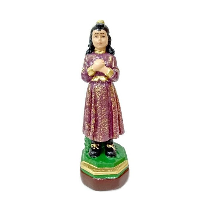 Imagem Escultura de Santa Menina Izildinha em gesso maciço com pintura artesanal.Possui 15 cm. Fotos reais do produtos. A imagem que você receberá é exatamente a da foto.Produtos exclusivos EVANGELIZE
