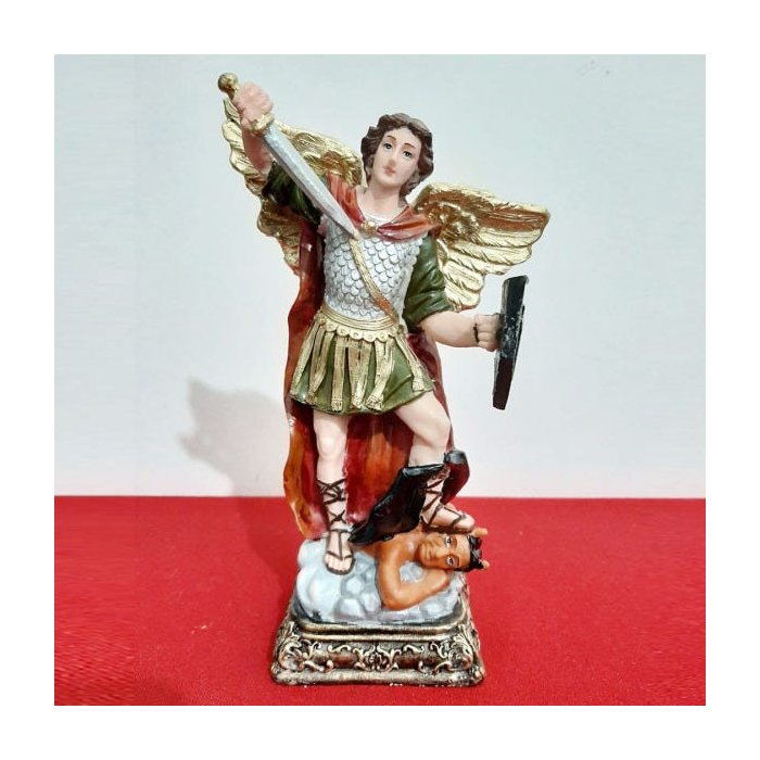 Com 20 cm de altura, a peça é feita Resina nacional, material resistente, alta qualidade e durabilidade. A Imagem de Resina é muito melhor se comparada às imagens de gesso.Para melhorar, a Imagem de São Miguel Arcanjo é pintada com tinta P.U automotiva, o que significa mais fixação e ela pode ser exposta a agentes externos, como o sol e a poeira, sem desbotar e nem perder sua coloração original.