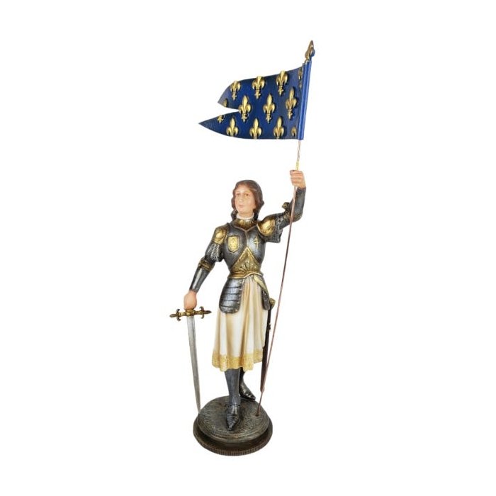 Imagem de Santa Joana D'Arc, feita em resina, policromada.