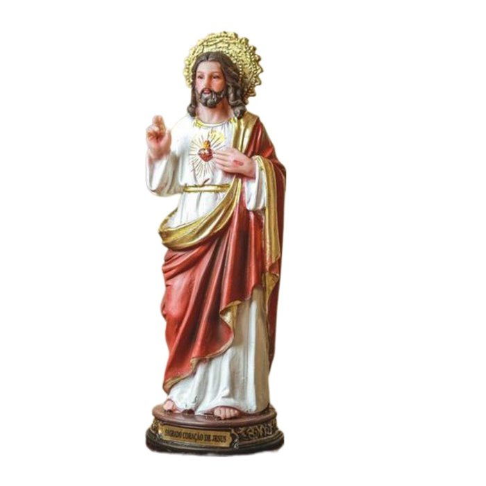 Imagem Sagrado Coração Jesus Pintura Detalhista Resina 30cm