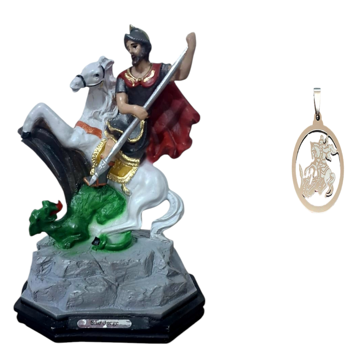 Imagem Santo São Jorge Guerreiro 20cm + Pingente Aço Inox