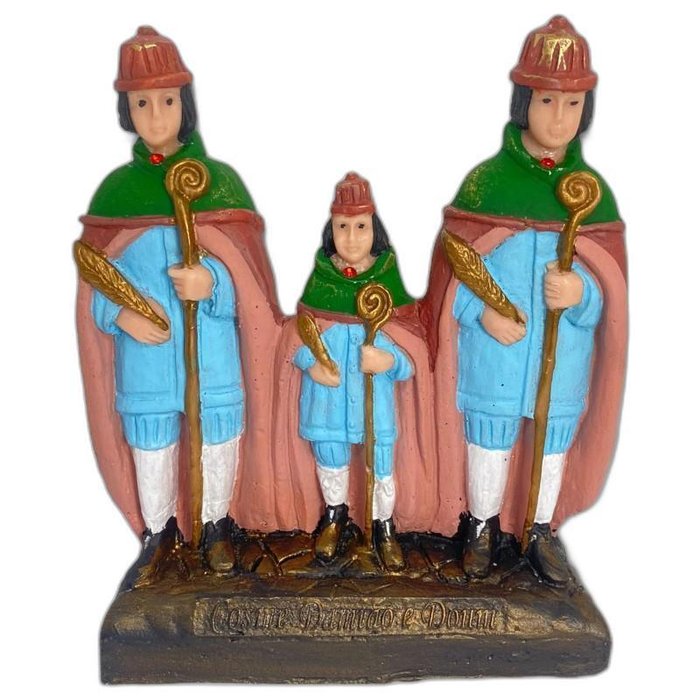| Nome | Imagem São Cosme, Damião E Doum Colorido Em Resina 15 Cm |