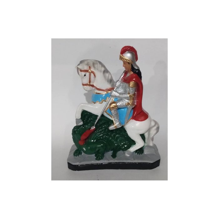 Imagem São Jorge Escultura Gesso Estatua 20 cmAltura: 20 cm*Pintura Automotiva*Feita em gesso cerâmico resinado ou resina super-resistente, junto com outros materiais selecionados para dar à sua imagem um alto padrão de qualidade e durabilidade.Além disso, é produzida artesanalmente com dedicação e carinho para você homenagear sua divindade protetora com muita fé e amor!