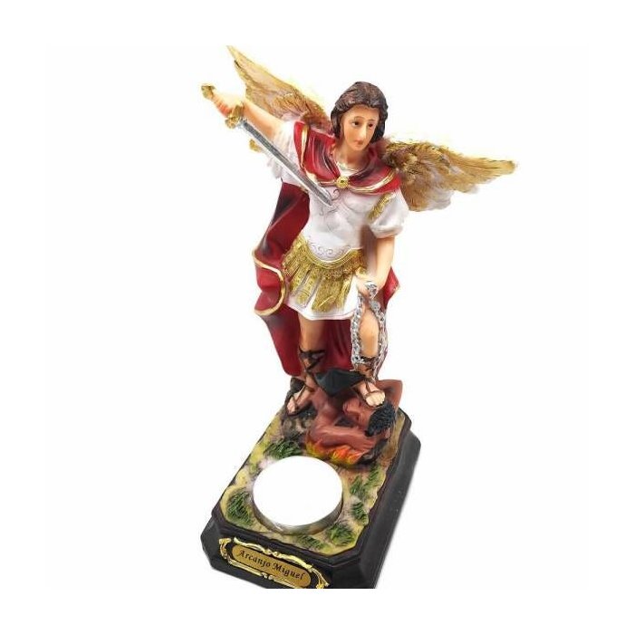 Imagem São Miguel Arcanjo com Porta Vela Resina 20 cm