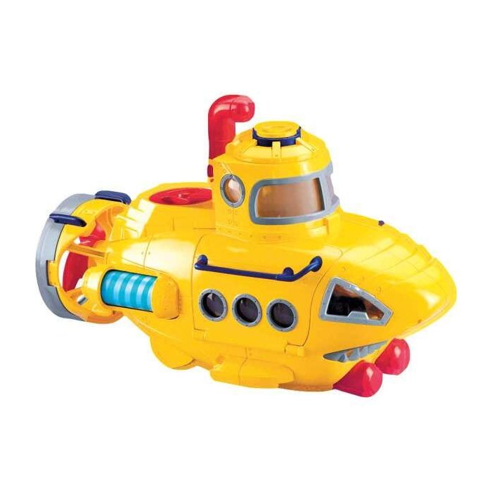 O super submarino vem com 2 figuras e diversos acessorios Suas helices traseiras giram quando ele e deslizado pelo chao e seus dois torpedos podem ser disparados a qualquer momento Alem de tudo isso a cabine interna tem portas que abrem e fecham. Dimensões: Largura - 31.5cm, Altura - 13cm e Comprimento - 28cm. UNIDADE