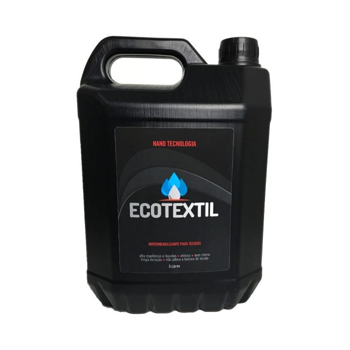 Ecotextil é um impermeabilizante de tecido fabricado com a mais inovadora tecnologia de proteção (nanotecnologia), capaz de proteger a superfície sem altera-la ou mancha-la. Aplicável em qualquer tipo de tecido. Não é toxico, não é inflamável e não oferece nenhum risco a quem aplica. Após aplicar, ecotextil proporcionará: Proteção contra raios UV, Biodegradável, sem cheiro, sem tonalidade, não é inflamável, Repelência a liquido, termo resistente, Não altera o toque, não reage com o tecido.