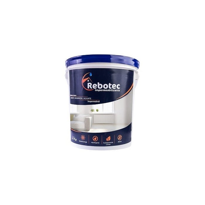 REBOTEC é um aditivo em pó para impermeabilizar concretos e argamassas, que reage com o cimento durante o processo de hidratação, dando origem a substancias minerais que bloqueiam a rede capilar, proporcionando uma elevada impermeabilidade ao concreto ou argamassa.