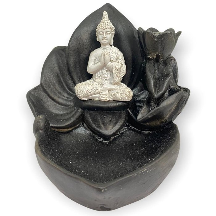 Incensário Cascata Flor Grande Buda Mini Branco E Preto