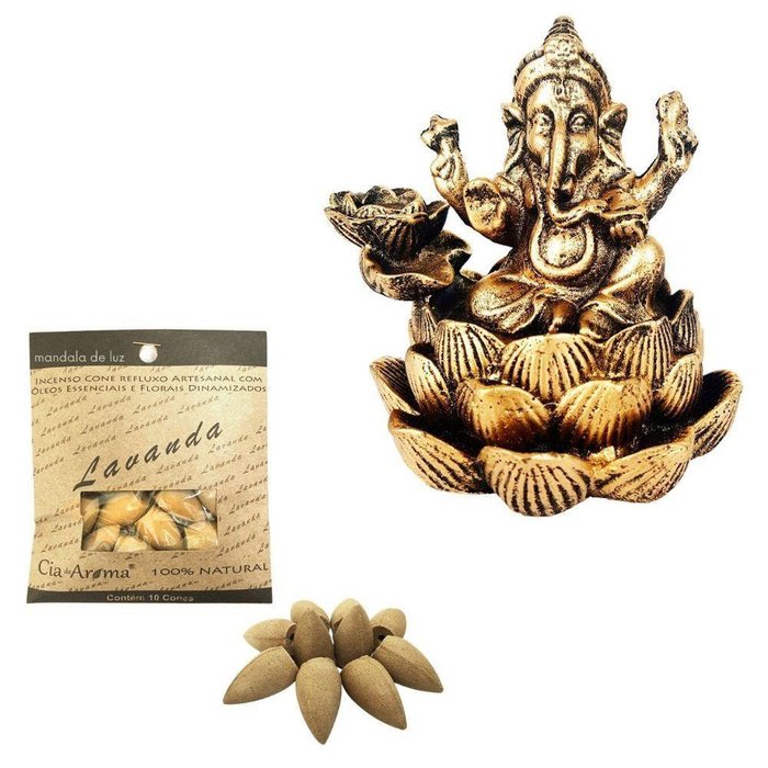 Incensário Cascata Ganesha + Incenso Cone Lavanda