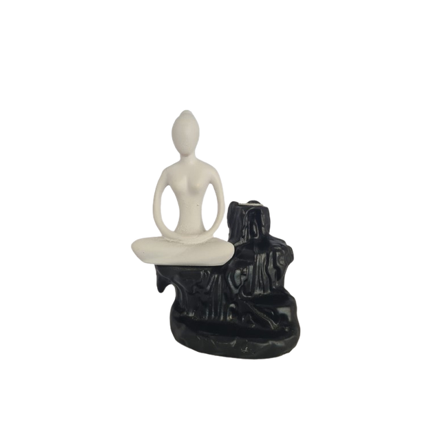 Incensário Cascata Preto com yogui em branco (Para incenso cone)