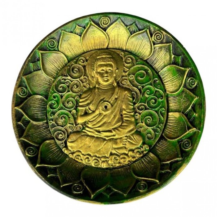 Incensário Prato Buda 12 Cm em Resina - Escolha a Cor:buda Verde