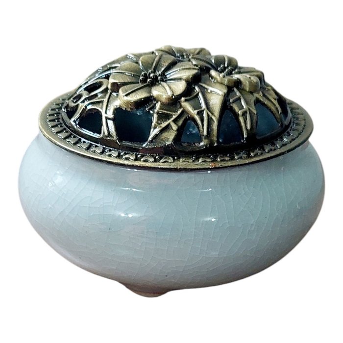 Incensario Turíbulo Metal Porcelana 10 Cm Defumador Cinza cinza