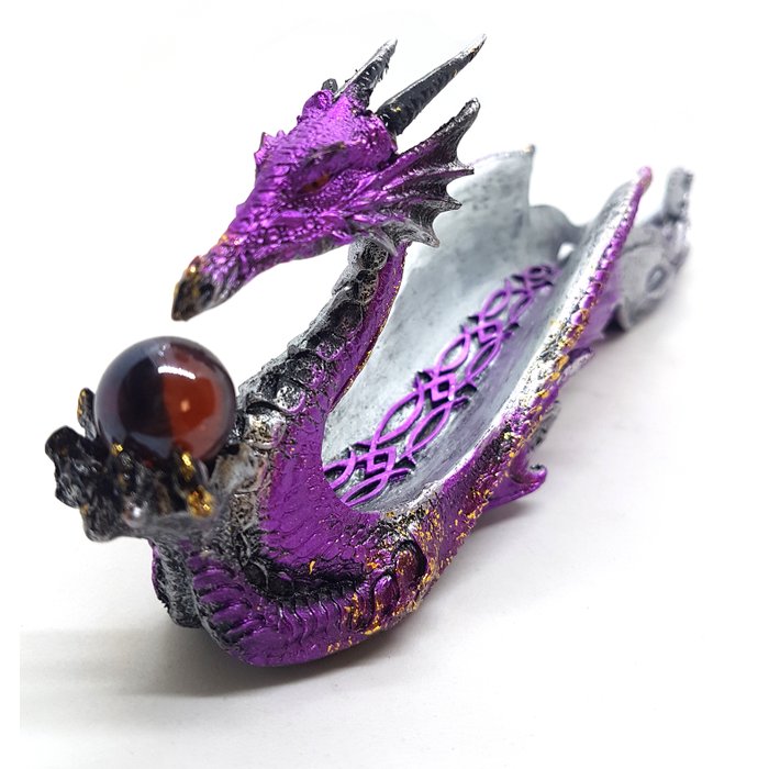 Incensário do Dragão Celestial com bola de cristal para 1 vareta. Além de funcionar como um incensário, ele também serve como um lindo enfeite decorativo para tornar seu ambiente mais rico. O dragão possui o significado de sabedoria, força, poder, proteção e riqueza. Trata-se de uma peça importada, elegante e sofisticada, que serve, não apenas como um incenśario, mas também como decoração. Tem 31 centímetros de comprimento. Produto construído em resina, altamente resistente.