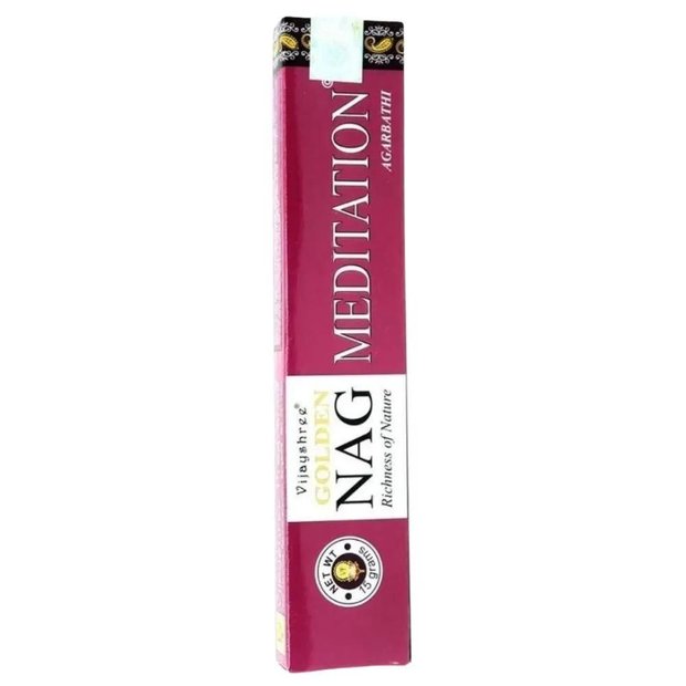 O Incenso Indiano de Massala Golden Nag Meditation tem um aroma amadeirado com toque floral. Ele é muito utilizado para renovação da energia do ambiente, deixando o local mais calmo e relaxante, além disso, esse é o principal incenso usado para meditação.