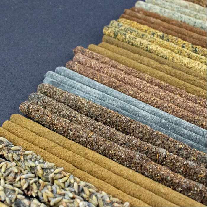 Blend terapêutico, Nirvana, varetas de bambu, pó de madeira e aglutinante.