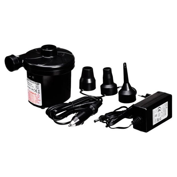Inflador elétrico em plástico ABS, acompanha carregador Bivolt + 12V. Compacto e potente. Acompanha três bicos de diferentes tamanhos, infla e desinfla._x000D_